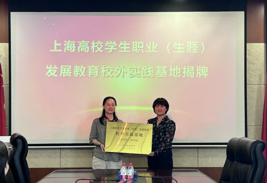 刘倩和严春华共同为上海高校学生职业(生涯)发展教育校外实践基地揭牌。双方将围绕联合打造学生实践基地、提升学生职业生涯发展,积极推进就业工作、实现校企精准对接等方面加强合作。