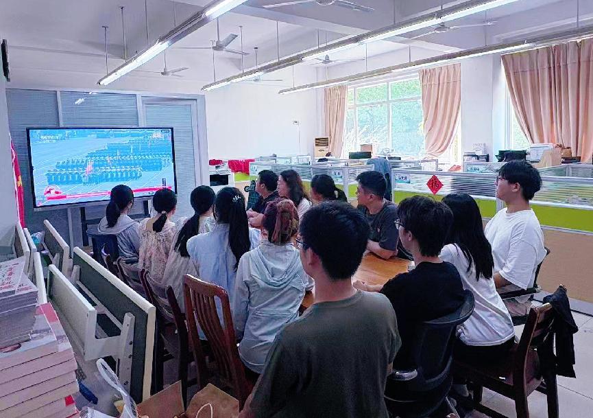 学院党委组织党员师生们集中收看纪念中国人民抗日战争暨世界反法西斯战争胜利80周年阅兵实况直播。