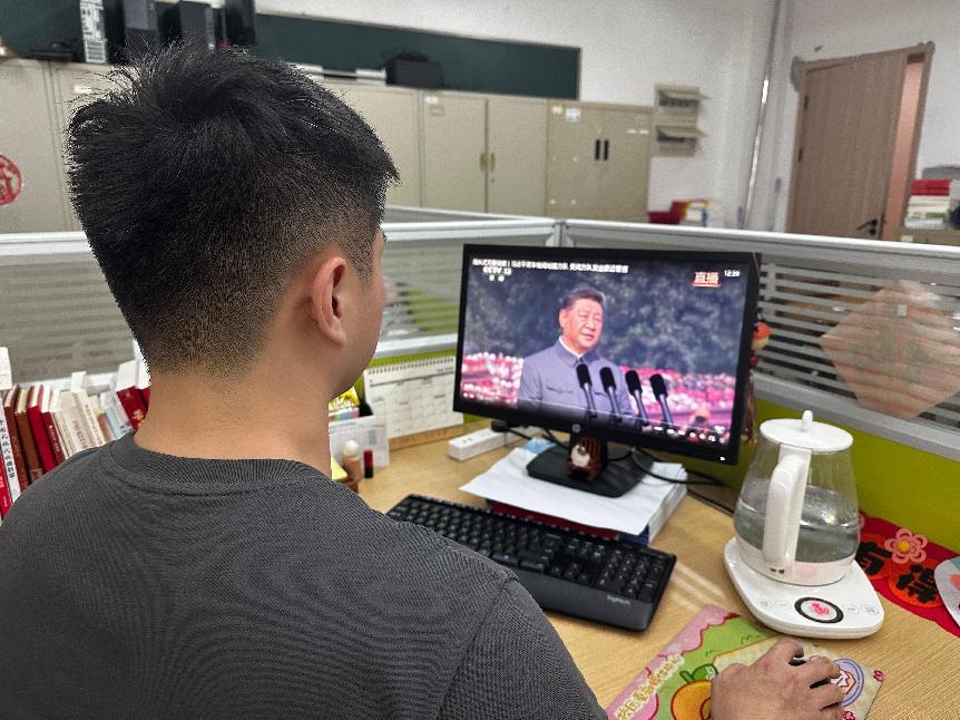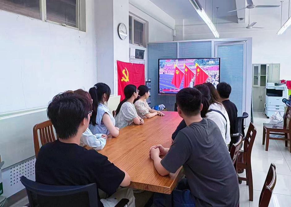 师生党员神情专注,被庄严仪式深深震撼,从阅兵展示的历史荣光与大国重器中汲取奋进力量,深刻感悟伟大抗战精神,坚定了为实现中华民族伟大复兴贡献力量的决心。