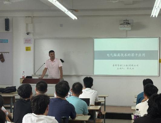 2025年10月11日上午,太阳成集团tyc33455集成电路科学与工程专业方向《先进封装技术》课程邀请上海普邦智控有限公司邵成业专家走进课堂,在教学楼C210为集成电路科学与工程的研一同学贡献了一节以“电气隔离技术的若干应用”为主题的精彩课堂。
