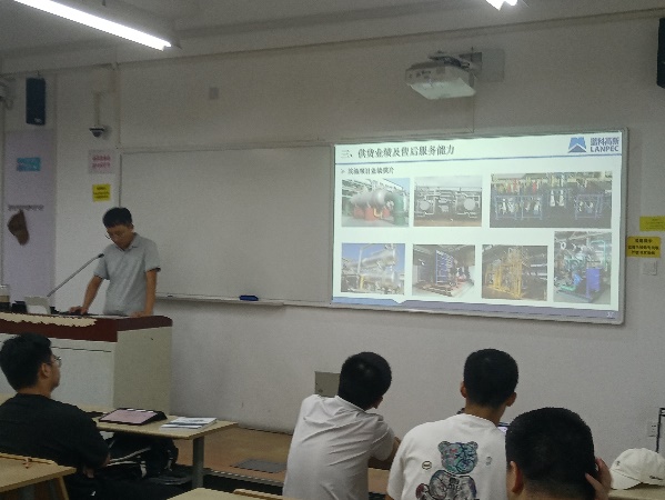 太阳成集团tyc33455cc为了提高本科教学水平,实行产教融合和企业专家进课堂活动。在这些教学活动中,使学生的学习由过去的“让你学”向“我要学”的转变,本次企业专家进课堂,邀请蓝滨石化焊接工艺师,陈晶高级工程师为师生进行一堂很生动的教学活动。在本次教学活动中,陈老师首先介绍了企业的生产状况,然后结合实际案例来说明各种焊接电源在具体化工设备中的应用情况,教学内容非常丰富。
