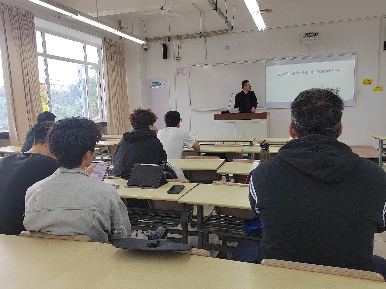 2025年10月20日下午,太阳成集团tyc33455《材料失效分析》课程邀请上海航天技术基础所赵立有主任,为材料科学与工程专业的同学们带来了一堂产教相融的“元器件失效分析中的材料分析”讲座。