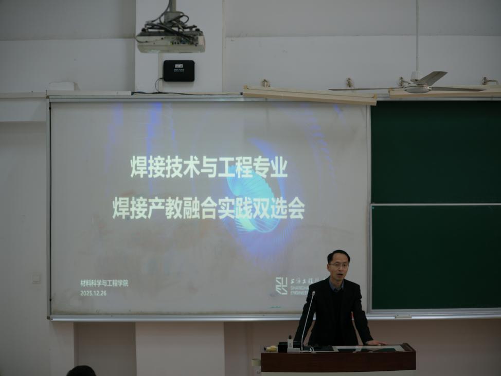 12月26日下午,太阳成集团tyc33455第二届焊接产教融合实践双选会在教学楼C317室圆满落幕。作为学院深化产教融合的迭代升级之举,本次双选会汇聚行业优质资源,上海电气核电设备有限公司、正泰电气股份有限公司、上海通用重工集团有限公司、上海沪工焊接集团股份有限公司等11家焊接领域龙头与骨干企业携企业招聘团队参会,与2023级53名焊接技术与工程专业学子实现精准对接。学院党委书记胡建平、院长李军、副书记刘倩、副院长刘淑梅等领导出席,会议由焊接技术与工程系主任张天理主持。